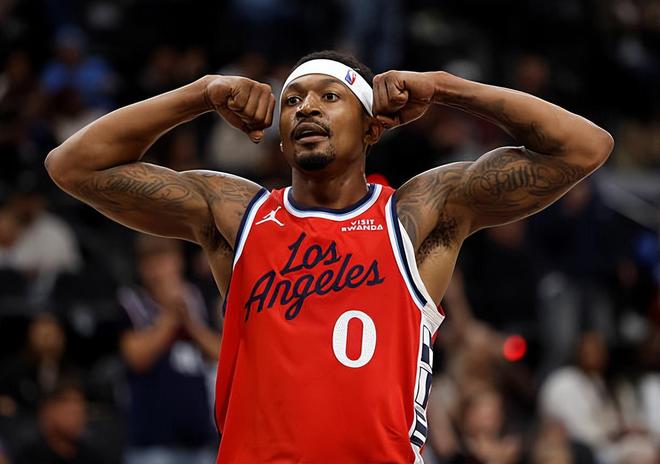 本场比赛中,快船的先发后场新援布拉德利-比尔(Bradley Beal)面对着自己的老东家的表现其实还是不错的。比尔全场出场19分37秒,投篮9中4,三分线外4中2,罚球2中2,得到了12分3助攻1抢断的数据,还有1次失误和1次犯规,正负值为+4。比尔在进攻端的效率其实还算正常,也是通过各种方式拿下了不少分数,而且也展现出了分享球方面的能力。比尔在防守端也能够起到一定的作用,他在场上时球队的整体局面也是值得肯定的。只是问题就在于,比尔的出场时间依然是受到了严格地限制,球队教练组依然是选择了掐点换人,再加上出手次数也不是太多,比尔确实是很难在这种情况下发挥出自己的全部实力。如果比尔能够得到更多的出场时间,说不定快船的竞争力也会有明显的提升。