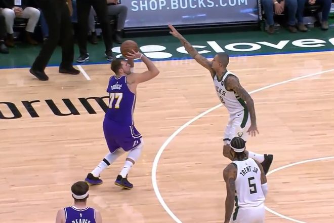第四节决战,小特伦特单打拉拉维亚撤步三分命中,雄鹿追到13分打停湖人。里夫斯连中3记三分稳住局势,东契奇再造库兹马三分犯规,雄鹿挑战最终失败,分差又来到22分,比赛再无悬念,最终,湖人拒绝31分大逆转,客场惊险击败雄鹿队,取得2连胜。