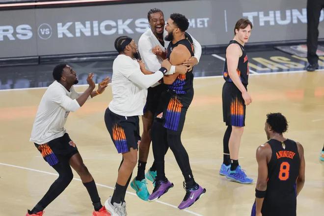 尼克斯这场更重要的胜点其实是在锋线和替补内线。OG-阿奴诺比怒砍28分,各种颜射三分,漂亮的上下步,还有硬钢科内特的攻筐。真厉害,哥们又进化了。唐斯存在感不强,效率还行。继绿军用怀特对位唐斯之后,这场又看到了更离谱的对位。首发巴恩斯,替补KJ,这些人对唐斯,让中锋对哈特——哈特第四节关键时刻硬解三分杀死比赛。大场面三分这件事上,他真是巴恩斯的对立面——这都是常规内容,没啥说的。瓦塞尔对唐斯就略显硬核。唐斯这场存在感不强有点怪,我没有翻录像细究这件事。