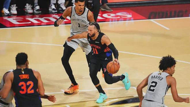 分散的火力其实适合打尼克斯。之前写尼克斯的时候提到过,这个队中路收的还是比较狠的,护筐也不错,还有若干素质优秀的单防人,头铁死磕他们并不容易。反倒是马刺这种东一榔头西一棒槌的进攻好使。季中赛决赛观感也是如此,马刺通过漂亮的转移球创造了不少机会,如果只看前三节,马刺打得非常好。