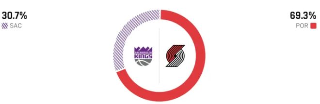 赛前,美媒ESPN对本场比赛进行了胜率预测,开拓者的胜率高达69.3%,稍占优势,国王队胜率则仅有30.7%。