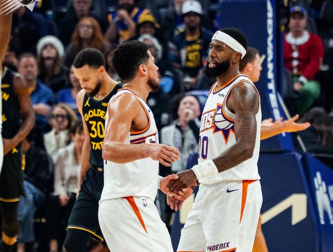 北京时间12月21日,NBA常规赛迎来西部卡位战,勇士主场对阵太阳。此前勇士的战绩13胜15负,排名西部第九;太阳的战绩为15胜12负,排名西部第七。本赛季前两次交手,两队各拿一胜,但在2天前双方第二次交手时,勇士惨遭古德温罚球绝杀,且库里全场只有14中3。这一次库里复出后,还没带队赢球,球队陷入两个怪圈,库里拿高分的比赛,勇士防守端很糟糕,库里在防守一端也是球队隐患;库里表现低迷的比赛,那自然球队整体进攻都受影响。本赛季库里在场时,球队攻防效率均为118.5,有进攻没防守。